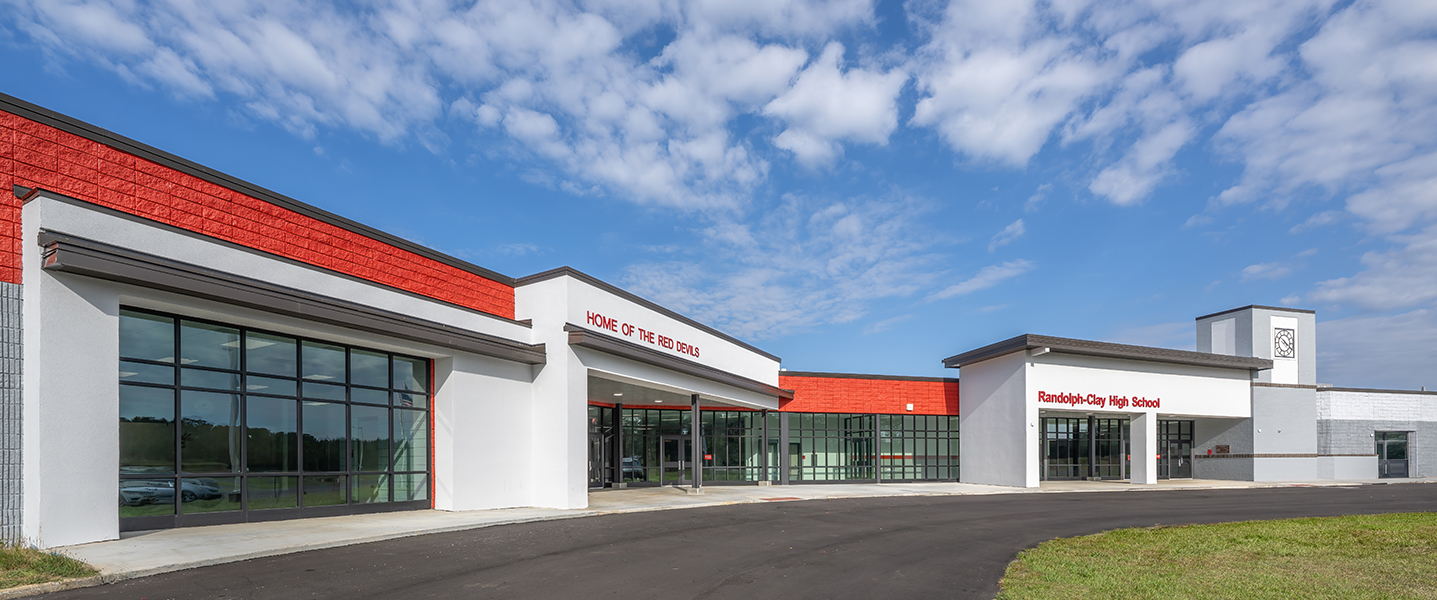 We were commissioned to redesign and renovate the Randolph County School System’s Middle/High School and transform it into a unified facility capable of housing the entire K–12 student population under one roof. The extensive renovation included converting former high-school classrooms into elementary-appropriate spaces, each tailored to the unique requirements of younger learners. Additional project priorities included providing new interior finishes throughout, replacing the HVAC system, and creating a refreshed architectural identity for the school’s main façade. Although the facility now serves all grade levels, we designed clear and secure separation between the Elementary, Middle, and High School programs, each with its own defined area and dedicated main entrance.
